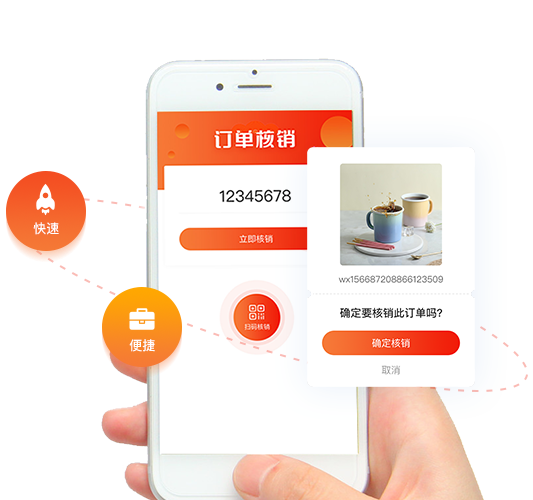 到店核销线上线下o2o经营模式,线上促销引流下单,线下体验核销提货,快速引流到店率翻倍!手机扫码核销、验证码核销、后台订单核销多种核销方式,方便快捷!